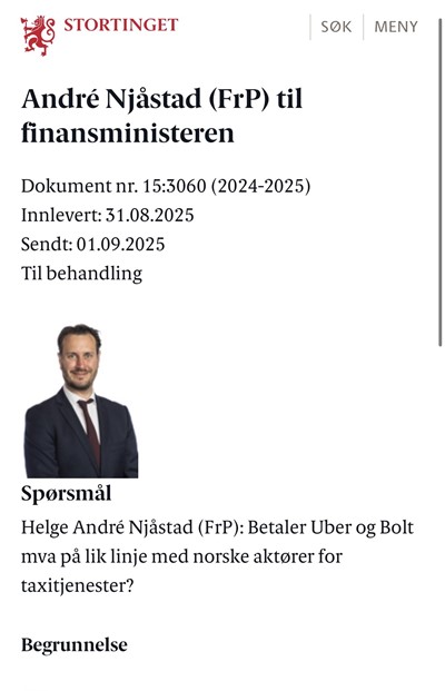 Et svært viktig spørsmål er sendt til Norges Finansminister 31.8.2025.
